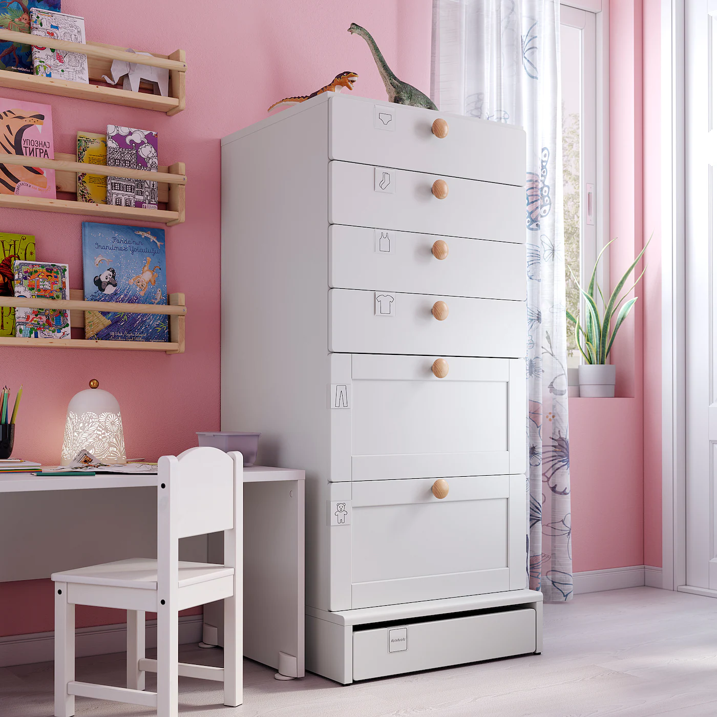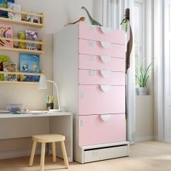 IKEA SMÅSTAD / UPPFÖRA 6drawer Chest White/pale Pink 23 5/8×24 3/4×53 1/2 “
