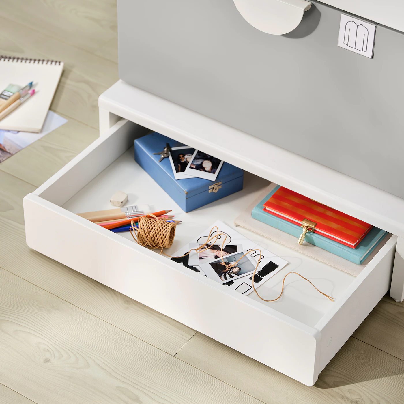 Drawer bottom:Fiberboard, Acrylic paint