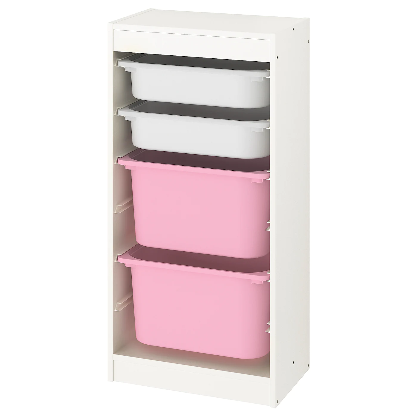 The frame comes with guide rails, so you can place boxes and shelves where you want them, and change them any time. Low storage makes it easier for children to reach and organize their things.Material
